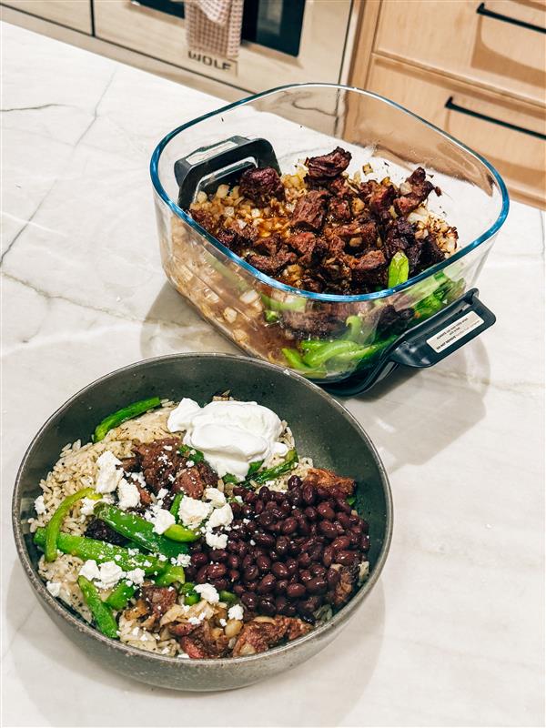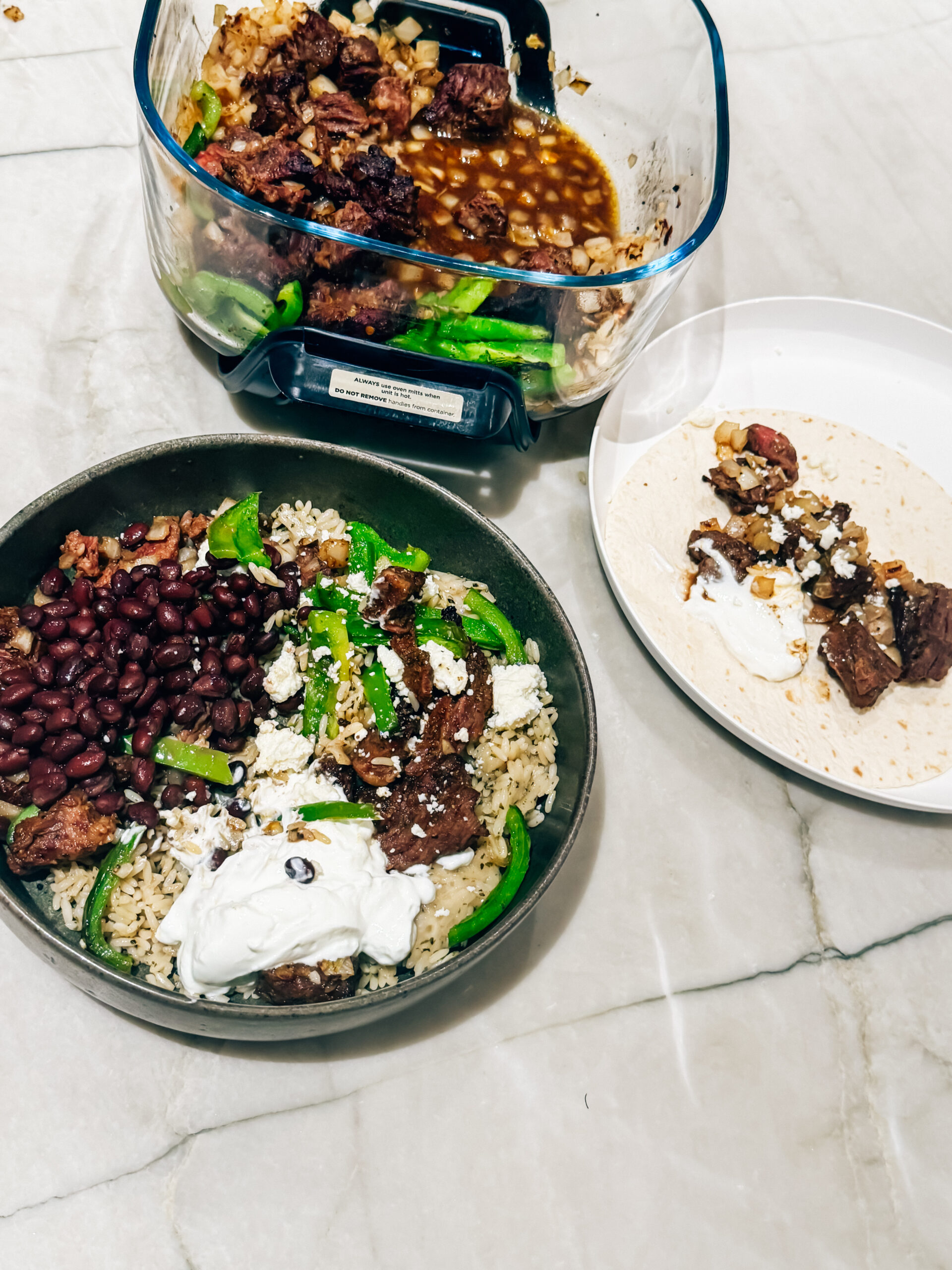 The Ninja Crispi (or any air fryer) does all the heavy lifting here. The flank steak gets beautifully crispy on the edges while staying tender inside, and the onions and peppers cook down just enough to add sweetness and texture. The Siete Carnitas seasoning brings that bold, smoky flavor without needing a long ingredient list.